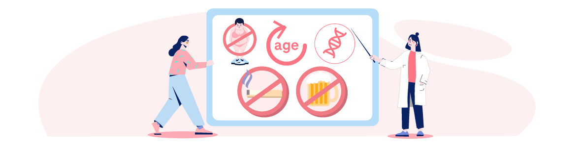 - Věk prvního těhotenství – riziko stoupá s věkem při prvním těhotenství nebo u žen, které nerodily